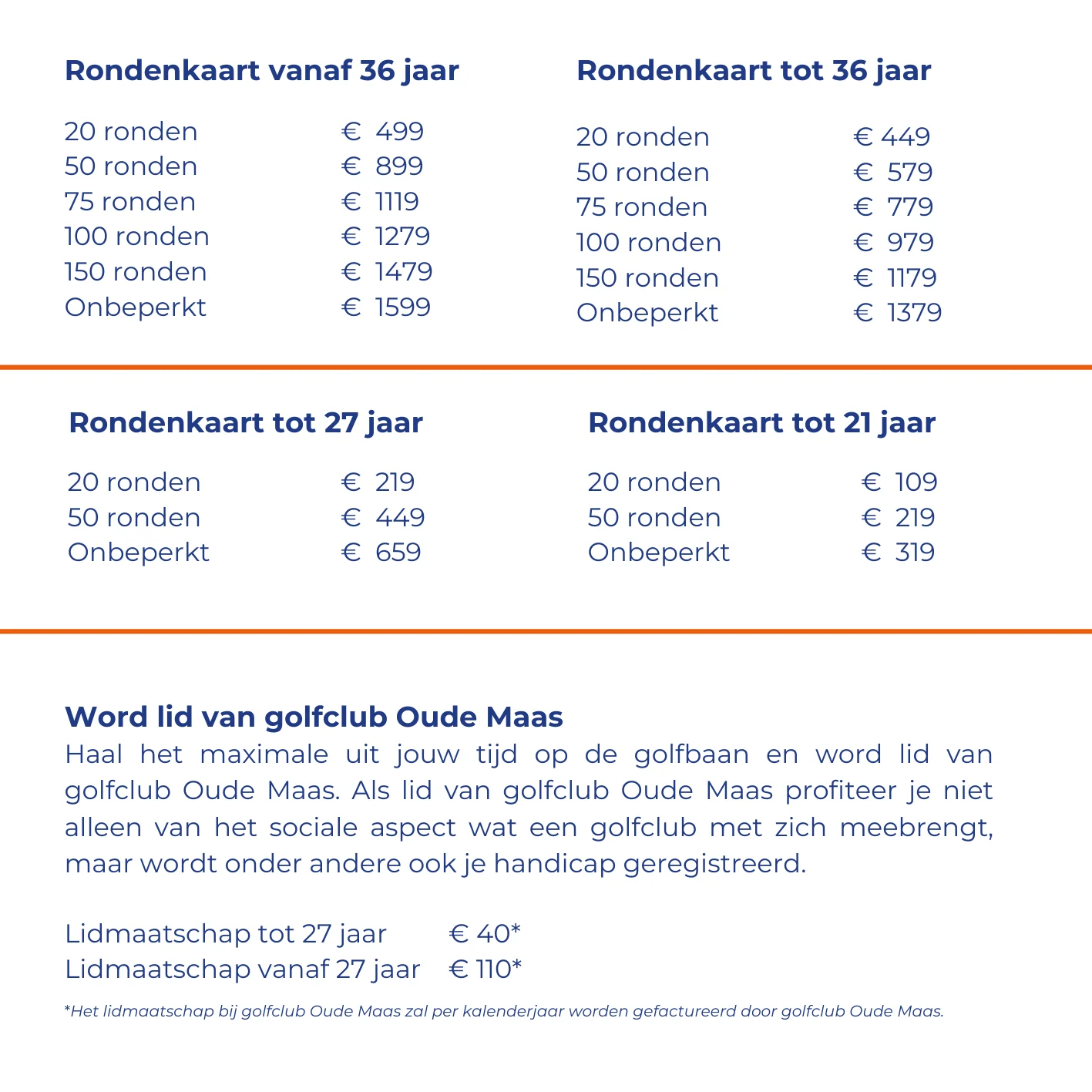 - Voor deelname aan (club)wedstrijden, kan je de verschuldigde greenfee voldoen met jouw rondenkaart. Aanvullend betaal je dan, indien van toepassing, alleen nog de wedstrijdbijdrage.